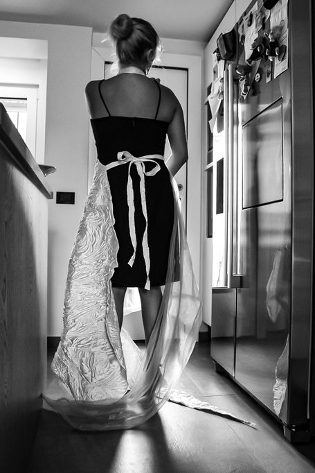 Why give the rich women of New York City an item which they will rarely use? The apron I based my design off of is completely functional; however, the setting in which it is seen has no use for it. I transformed this typical, functional apron into a garment that is more suitable for the Manhattan-wife lifestyle and meant to be appreciated as more of a glamorous artifact than a useful tool for the kitchen. I quilted the fabric in order for it to resemble the ripples of wood.