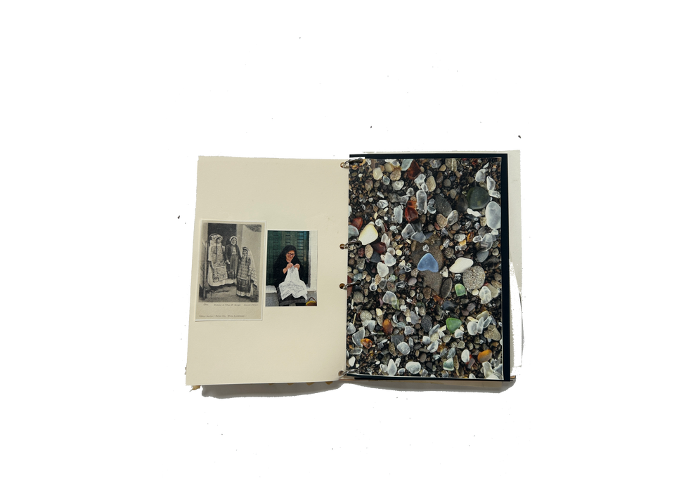 Inspired by the smell of wild herbs and the general feeling of the sea, I created an outfit comprised of a top and skirt. I used liquid latex to drape fabric, adding elements like seaglass, shells, dried herbs, beads, pottery pieces and sequins into this mixture to depict an abstract seashore.